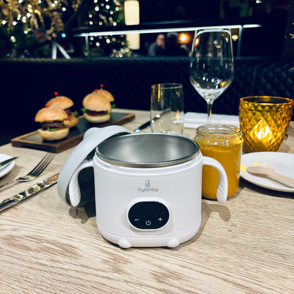 Wir haben uns entschieden, einen tragbaren und kabellosen Topfheizer zu entwickeln, der Sie überall hin mitnehmen kann. Dank seines integrierten Akkus und seines zu 100 % abnehmbaren Deckels ist der Nomad™ Gläschenwärmer 3.0 in der Lage, Babymahlzeiten unter allen Bedingungen und in jeder Situation bei der idealen Temperatur zuzubereiten. Ob im Restaurant, im Park, im Flugzeug, beim Spaziergang, Sie können Ihren Topf selbstständig erhitzen, wo und wann Sie wollen.