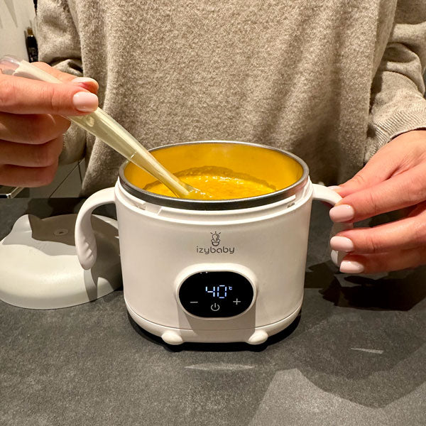 Zwischen 4 und 6 Monaten ist dieser Zeitraum heikel, da Sie beginnen, andere Lebensmittel als Milch einzuführen. Das Baby muss in der Lage sein, in seinem eigenen Tempo Fortschritte zu machen, wenn es seine ersten Mahlzeiten probiert. Da er weder an die Nahrungsaufnahme gewöhnt noch autonom ist, dauert das Essen leider seine Zeit und nach 5 Minuten ist sein Töpfchen bereits kalt.